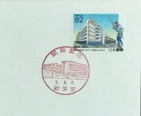 日本首日封:1990年日本地方邮政東京(東京-3)发行《新东京局·东京包裹局(开局纪念)和木场的角乘》首日封(NCC版)(盖“开局纪念·新东京”纪念邮戳)N-5271