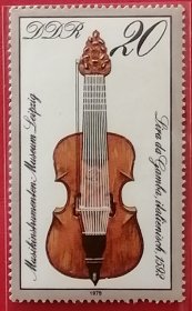 民主德国邮票 东德 1979年 发行量200万 莱比锡乐器博物馆藏品 1592年意大利嘎巴琴 4-1 全新 维奥尔琴,源于15世纪的欧洲,最初在西班牙和意大利流行,流行于文艺复兴和巴洛克时期。它的名字来源于意大利语,意为“腿上的维奥尔琴”,著名的作曲家如马兰·马雷和约翰·塞巴斯蒂安·巴赫都曾为之创作过作品。