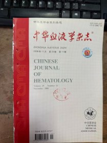 《中华血液学杂志2008年11月第29卷第11期》 张丽红 王慧君 张莉等:免疫抑制治疗对再生障碍性贫血患者骨髓细胞遗传不稳定性的影响/王珺 邵宗鸿 付蓉等:重型再生障碍性贫血患者树突细胞亚群及其与淋巴细胞转录因子T-bet 表达的相关性/蔡艳霞 孟凡义 孙启鑫等:硼替佐米单独或联合三尖杉酯碱、三氧化二砷对耐药白血病细胞增殖、凋亡的影响/张娜 宋杰:分化抑制因子基因家族在白血病细胞中的表达....