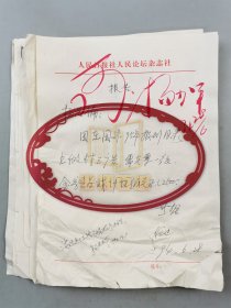 【樊明经旧藏】《中国教育报》主编、《人民日报》副主编樊明经手稿附人民日报社社长邵华泽,原吉林省委书记,社长高狄,常务副总编张云鹤签批墨迹(人民日报笺)