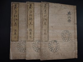 1861年版画册《嘉多比沙志》(傍廂卷)后集上中下3册全,线装江户时期,版画多少 版画精美,无病长寿药 军事 武器 草花 人名 植物虫 古建筑 酒 无病长寿药 草等等大开本,尺寸25.8*18