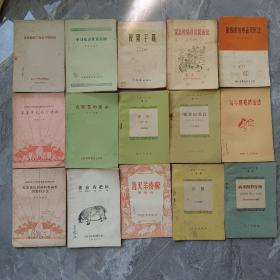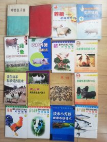 中兽医手册,用中药治疗动物疾病,赤脚兽医手册,都是76年版。每本30元。养猪与猪病防治,猪病诊疗技术。肉牛绿色养殖。农村养猪新技术每本12元,猪营养饲料生产。农家猪场防疫。波尔山羊饲养。肉山羊饲养技术。每本8元。养鸡。香猪快速饲养。家禽饲养和饲料生产。反刍动物营养饲料生产。淡水小龙虾养殖技术。水产动物饲料配制与疾病预防。每本6元。还有很多养殖种植新技术价格好商量。本店购书低于20元请加六元快递费