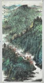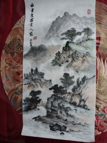 【4尺细笔传统山水画】【取自本人终身保真】周继业,艺术学院博士、硕士、大学讲师、广西美术家协会会员。 四尺整张国画原稿15-34《青山绿水有人家》(136×68cm)。