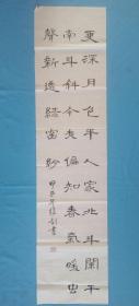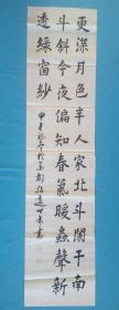 唐代洛阳人唐玄宗天宝年间诗人刘方平七言月夜【更深月色半人家北斗阑干南斗斜 今夜偏知春气暖虫声新透绿窗纱】陈世年竖条楷书家庭艺术悬挂橱窗茶楼会所办公室娱乐场所文化展示