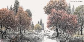 袁武等弟子、著名画家 杨平 2015年水墨画作品《大漠深处 胡杨 人家》一幅(纸本软片,约4.2平尺,钤印:杨平之印;作品由《中国美术市场报》直接得自于艺术家本人) HXTX102151
