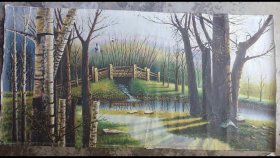 油画艺术作品,旧框拆下的,山林溪水,小小人家,怡然自乐,60x120cm,很好看的作品,老框拆下的,不喜勿喷!油画作品,艺术作品,手绘油画
