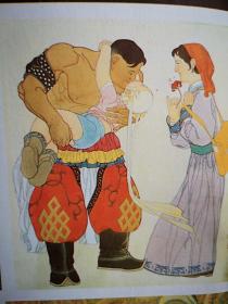 彩版美术插页(单张)草原风情画展作品,吴厚斌油画《搓毛绳》,韩金宝油画《鄂温克人家》,田宏图套色木刻《草原上的人们》,梁志高国画《节日的欢乐》,苏日台油画《巧手》,楚文化中的漆绘艺术四幅