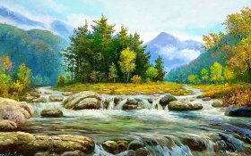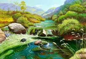 《强烈推荐客厅装饰画》 夏天的河边,绿水青山就是金山银山,送人礼物,自己收藏皆可,朝鲜油画,寓意极好,财源滚滚,尺寸可能稍有误差,介意可以私聊确切量尺寸