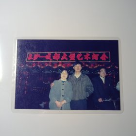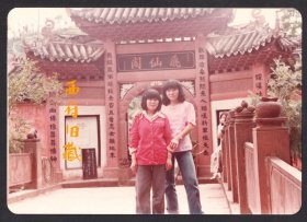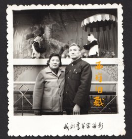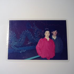 老照片-早年一对年轻人在长沙——成都大型艺术灯会上留影(过塑)