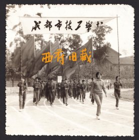 七八十年代,成都技工学校运动会,整齐的学生队伍老照片