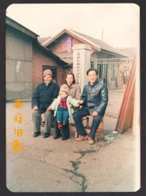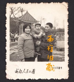 1979年春节,成都人民公园金鱼池,怀抱着玩具汽车的小孩子三口之家合影老照片