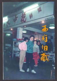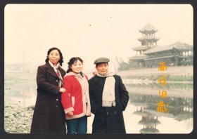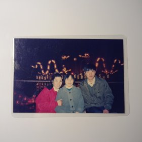 老照片-90年代母子三人在长沙——成都大型艺术灯会上留影(过塑)