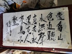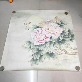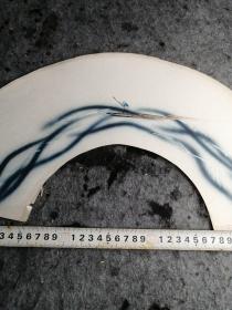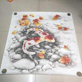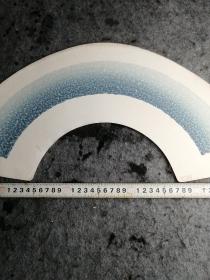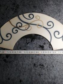 【日本和纸空白扇面之148】五十年代出品,精美的山水人物,花鸟鱼虫或几何图形等印花图案,赤橙黄绿,五彩缤纷!托裱件(盖“南部”印章或有编号,应为出品方样纸或存档纸)此图青峰作江上渔翁