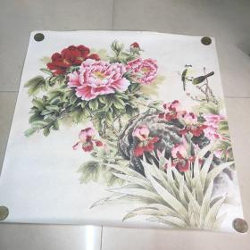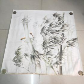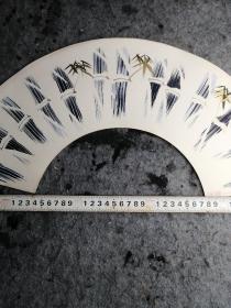 【日本和纸空白扇面之146】五十年代出品,精美的山水人物,花鸟鱼虫或几何图形等印花图案,赤橙黄绿,五彩缤纷!托裱件(盖“南部”印章或有编号,应为出品方样纸或存档纸)此图竹子