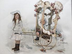 【百元 包邮】《儿童节花车巡游:“洛可可式”》(Das Kinderfest in Heyst,Das Rococowagelchen);1879年,套色木刻版画,纸张尺寸约41×29厘米