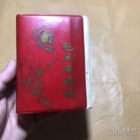 毛主席诗词学习(配的外套有些小,不能套得下书,皮套的上边沿和两个角部有点损。书内前边有15页左右的右上角有水晕。内完整不缺页。两首林词也不缺。)