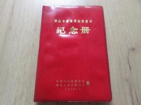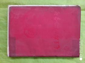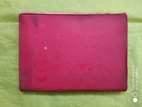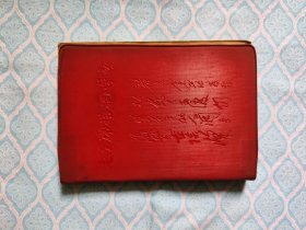 70年代笔记本:为人民服务纪念册(前毛主席像1页,金色毛主席题词2页,内画页-韶山毛主席旧居 革命圣地井冈山 遵义会议会址 革命圣地延安 首都-北京等图5页,画的背面是诗词和语录)红塑封50开