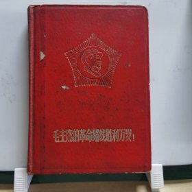 071笔记本/日记本:32开毛主席的革命路线胜利万岁日记本(红皮五角星毛主席军装头像,内有多张毛主席语录、毛主席诗词、革命圣地插图,使用了一页,系1969年好友陈晓春、张起民赠送沈殿强光荣参军)