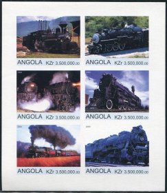 935 :安哥拉2000年铁道 火车无齿新票小全张邮票ED