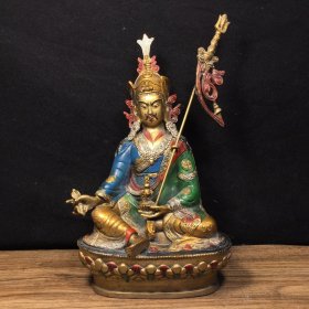 赔钱处理 铜器 彩绘 莲花生大师(尺寸 14*9.5*23.5CM 重935g)