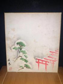 茶室小品色纸装裱茶道和风摆件回流古玩民清画原装935