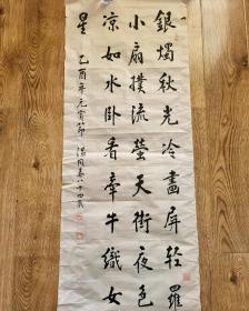 B44805号书法 李白 黄鹤楼送孟浩然之广陵 138×34cm 作者:尉天池 故人西辞黄鹤楼,烟花三月下扬州。孤帆远影碧空尽,唯见长江天际流。李白诗一首 (2005年)乙酉年秋月 天池