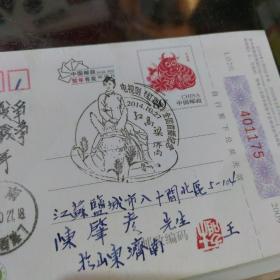 电视剧红高粱全国首播纪念济南寄江苏盐城邮资戳片