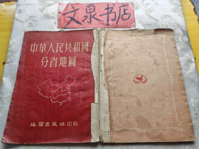 中华人民共和国分省地图 书脊粘贴,皮底缺小角内有一页有撕痕不伤字