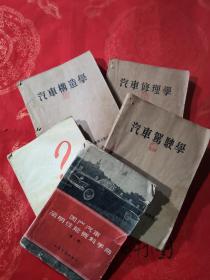 《汽车构造学》《汽车驾驶学》《汽车修理学》《国产汽车简明性能资料手册 第二辑》《汽车问题解答 第二集》早期汽车类老资料书籍、五册和售、实物拍摄、按图发货