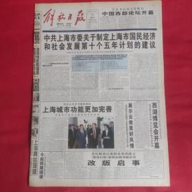 老报纸:解放日报2000年10月21【今日八版】【中共上海市委 关于制定上海市国民经济和社会发展第十个五年计划的建议.】