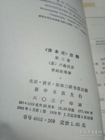 《资本论》注释 第三卷【繁体】【广济县武穴中学图书室】
