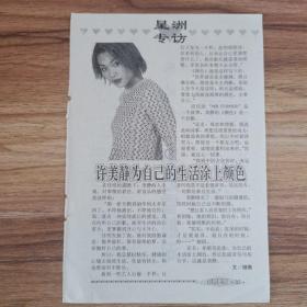 怀旧明星彩页收藏32开 许美静1张(新3)