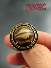 145_藏传 乾隆年制 铜鎏金嵌天珠戒指,圈口2.2厘米,重29克。铜鎏金工艺古朴,天珠纹理独特,藏传韵味交融历史厚重,指尖小物,藏无尽岁月故事,是文玩与收藏爱好者的别致赏品 。