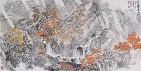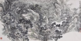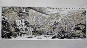 叶志华国画1张 山水画 源远流长 大幅 保真 为中国美术家协会会员、中国画学研究会会员、广东省美术家协会会员、中西文艺出版社社长、《中国画研究》杂志主编、《中国画研究》杂志网主编。