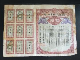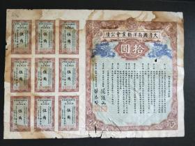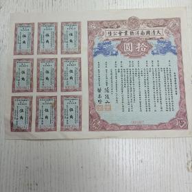 《大清国南洋劝业会公债》0004887/ 宣统元年五月初五日/正会长:南洋大臣两江总督张骏文、副会长:钦命江南提学使司。公债法章9条,息票9张。1909年。