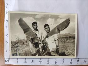 中国人民解放军郝步青在平山中队合影照片(右二为少校,右一为郝步青)(中国人民解放军老革命郝步青,曾获得过八一勋章等众多勋章,解放后在云南保山服役,六十年代调到河北平山县做团长,军衔至少应该中校)
