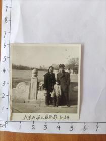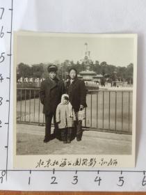 1962年郝步青一家三口北京北海公园合影照片照片(中国人民解放军老革命郝步青,曾获得过八一勋章等众多勋章,解放后在云南保山服役,六十年代调到河北平山县做团长,军衔至少应该中校)