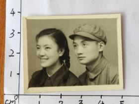 1955年中国人民解放军着55式军装与漂亮女朋友合影照片(中国人民解放军老革命郝步青,曾获得过八一勋章等众多勋章,解放后在云南保山服役,六十年代调到河北平山县做团长,军衔至少应该中校)