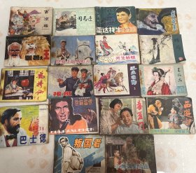 连环画:百凉楼;司马迁;雷达找牛;点金术;驯兽大王;扶我上战马的人;灵芝姑娘;陆游;鹊桥仙;接班;浴血睢阳3;王昭君;巴士徳;除霸雪恨;喜盈门;西游记;叛国者;小刺猬奏鸣曲 18本各售