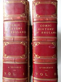 稀见签名本!1870年大开本/巴思著名装帧工坊BAYNTUN全皮精装/烫金封面与书脊/刷金书口/毛边/著名插图大师里奇(LEECH)20幅全页手工上色钢版插图/200幅木刻插图本《滑稽英国史》上下册(全)GILBERT ABECKETT- Comic History of England