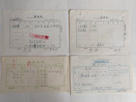 1976-1978年八一电影制片厂编剧史超签名单据4张一组,史超(1921-)福建福州人。1938年进入延安抗日军政大学,曾在冀鲁豫军区文工团,二野政治部文艺科,西南军区文化部,总政治部创作室工作,1959年调八一厂任编剧,创作作品主要有歌剧《两种作风》,话剧《东进,东进》,小说《钢铁意志》,《强盗的女儿》,电影剧本《五更寒》,《云雾山中》,《猛河的黎明》,《秘密图纸》(与郑洪,郝光合作)等等。