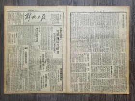 解放日报 1942年2月8日 敌军窜逃惠阳.黄河三角地带寇分般蠢动;延市冬学举行毕业礼;社论.英美贷款启示了什么;希特勒掠夺法国;寇机侵缅损失月余来共二百架;中国工业与中国资产阶级.续二.陈伯达;