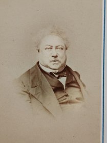 法国著名作家 大仲马 原版老照片 。大仲马(1802-1870),代表作品《基督山伯爵》、《三个火枪手》。大仲马出生于法国维勒科特莱。其父为拿破仑麾下将军。一生创作小说150多部,戏曲25部,作品总件数超300件。当时标准尺幅,约10×8厘米。
