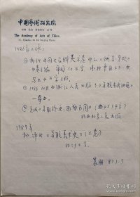 著名美术理论家、中国艺术研究院美术研究所原副所长、研究员,《中国美术报》创刊者之一,20世纪外国美术研究领域的重要理论家、教育家晨朋墨迹(中国艺术研究院笺)