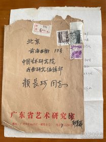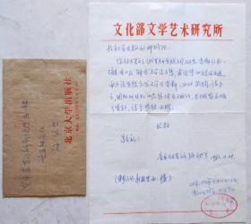 陆梅林(1923-),著名文艺理论家、翻译家。曾任中国艺术研究院副院长、外国文艺理论研究所所长、马克思主义文艺理论研究所所长。毛笔信札一通1页 附实寄封 45—C层