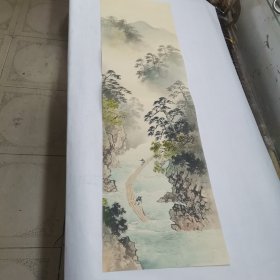 民国 绢本山水人物画一幅(画芯尺寸:长100cm,宽40cm)