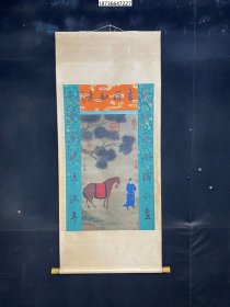 A旧藏纯手绘绢本四尺中堂带提拔AM57赵雍马人