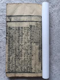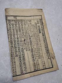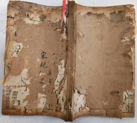 【了凡纲鉴】(新刊赵田了凡袁先生编纂古本历史大方纲鉴)补卷之三十七,清初木刻版,上眉框,四周单栏,半页十一行,注双行,22.5*12.8*0.5,四十八筒页,左下角略缺,伤十字左右,七五品。