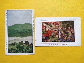 【集邮品拍卖保真:民国时期 日本战前1920-1940年 文省部美术展览会出品 夏山风景绘画 栗津名胜瀑布枫树明信片 2枚 品相如图】四2408-26