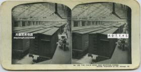 清末民国同期印制立体照片---美国也是世界最大的私人零售邮购企业西尔斯·罗巴克( Sears and Roebuck)公司火车运输部,将邮购物品装入车厢